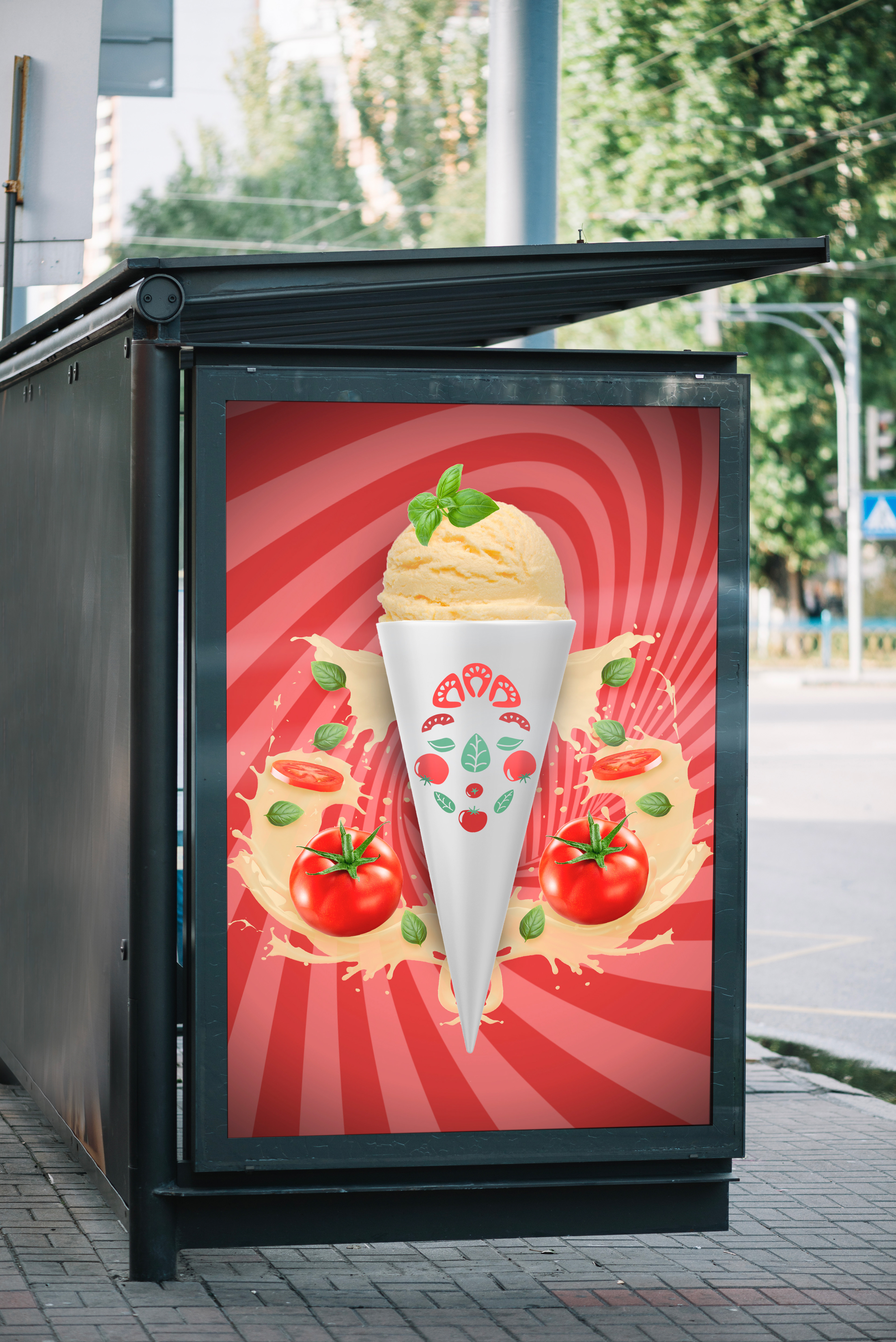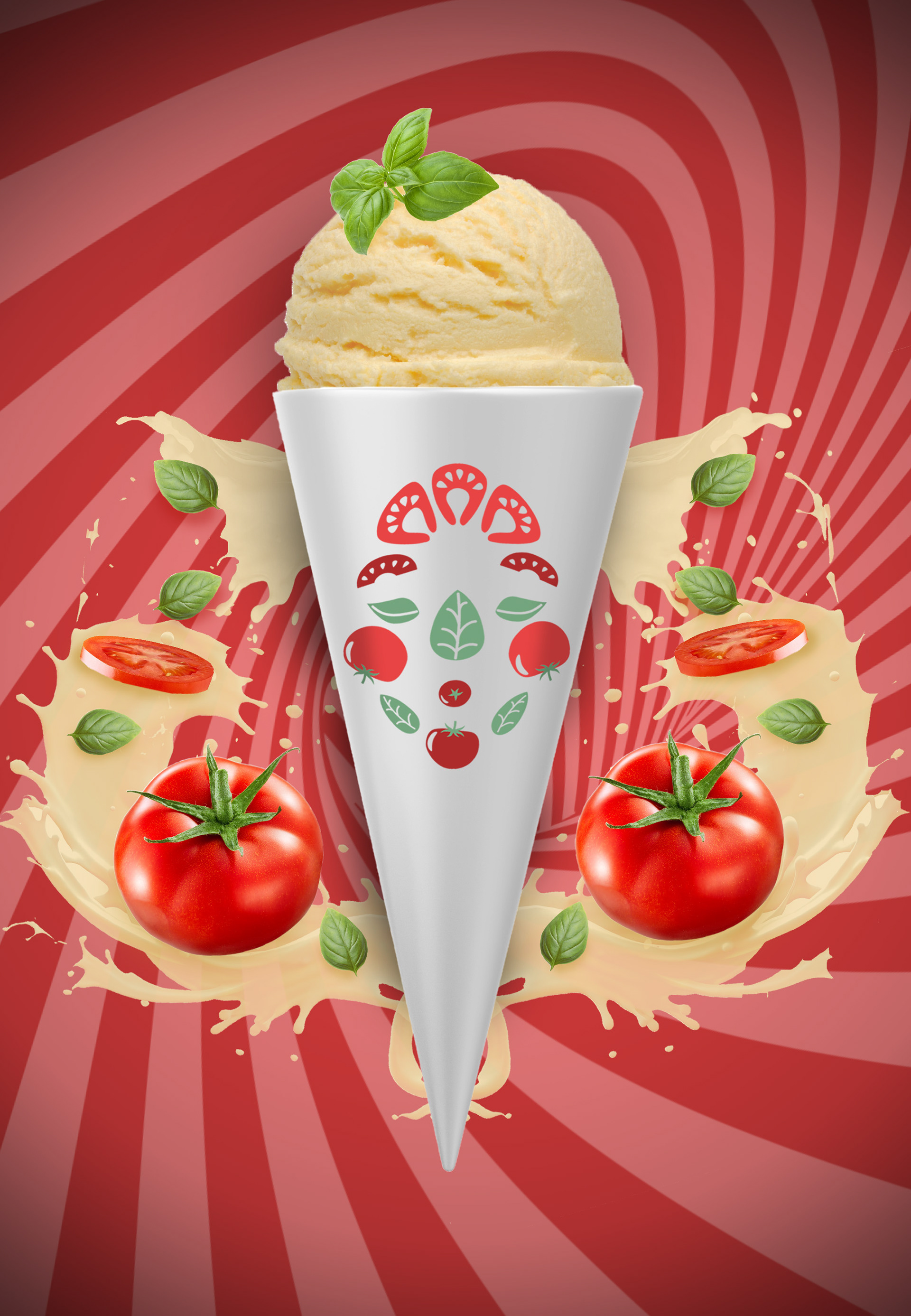 Het ijsje, geïnspireerd door Italiaanse keuken en kunst, bevat een gezichtvormig symbool dat doet denken aan Giuseppe Arcimboldo's meesterwerken. De rode en groene tinten knipogen naar de Italiaanse vlag en belichamen de heerlijke smaken van tomaat en basilicum