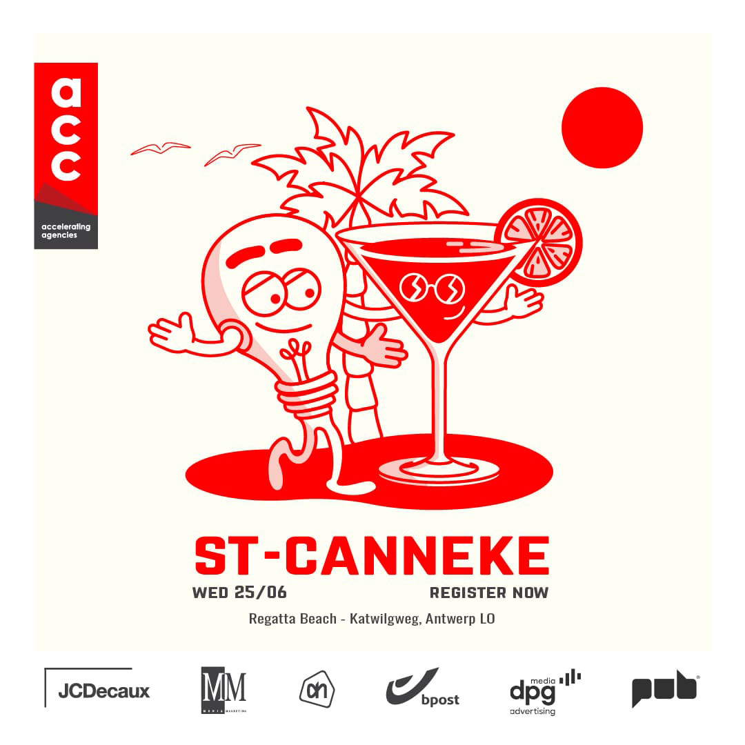 Tijdens mijn stage bij LDV United ontwierp ik de key visual en de geanimeerde versie voor St. Canneke. Dit event is dé ontmoetingsplek waar jonge creatieven kunnen netwerken, geïnspireerd door de Cannes Lions, maar in een laagdrempeliger en toegankelijker format.